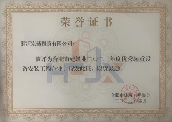 合肥市建筑業2021年度優秀起重設備安裝工程企業頒發機關:合肥市建筑工程協會