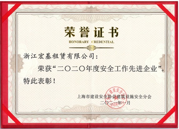 2020年度杭州市建筑機械行業先進企業頒發單位:杭州是建設工程質量安全管理協會施工機械安全分會