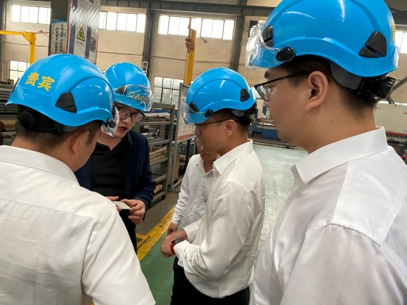 南京高立董事長張正國詳細介紹了企業發展歷程及產業發展板塊,總經理朱海楊帶領宏基團隊參觀工廠,進一步介紹產品生產流程,展現出南京高立在機械制造方面專業技術。總經理張曉峰對南京高立的熱情款待表示感謝,對其強大的產品設計研發和設備加工制造能力給予了高度評價,對其機械產品的專業優勢有了更全面、深入的了解,并表示雙方合作空間廣闊,希望雙方能在多領域深化交流合作。