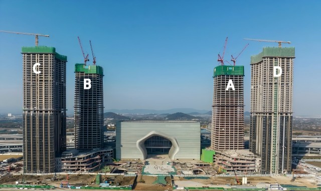 截至目前,“金手指”綜合體項(xiàng)目的四幢高樓均已突破200米大關(guān),城市新地標(biāo)雛形初現(xiàn)。預(yù)計(jì)到11月底,A、B塔樓將雙雙封頂,屆時(shí)整個(gè)綜合體的主體結(jié)構(gòu)將全面完工。